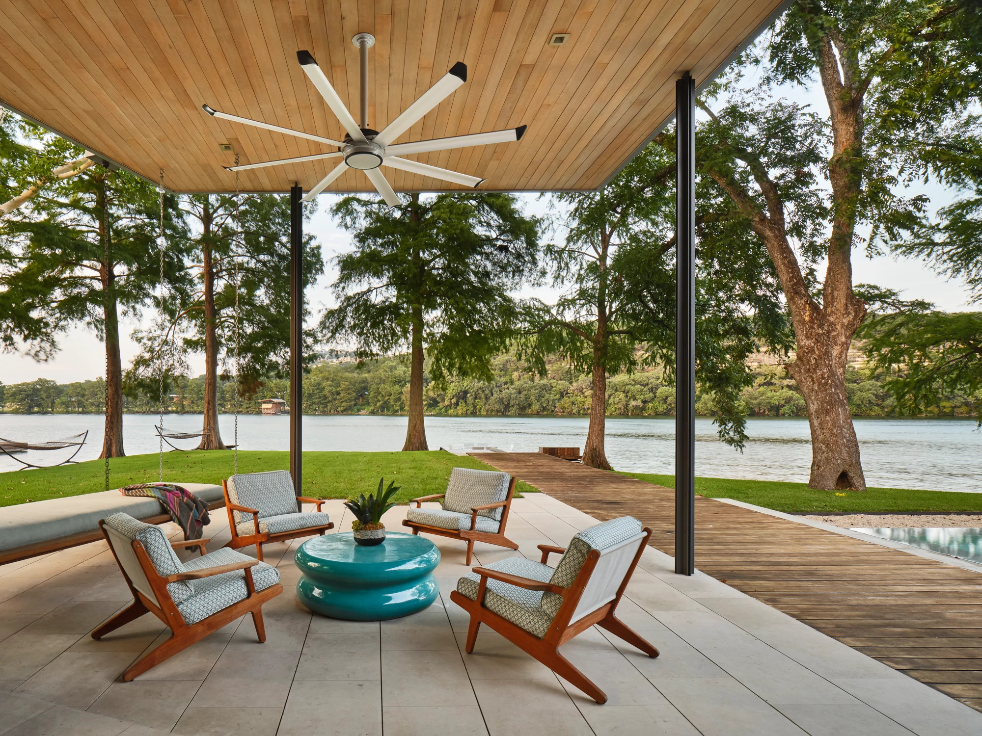 Engineered for covered outdoor use — patios, porches, poolside, and open-air dining.